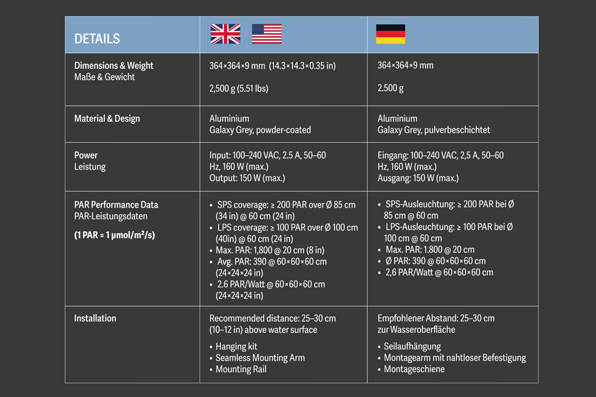 • Optimiertes Vollspektrum für intensives Wachstum, satte Farben und fluoreszierende Akzente
