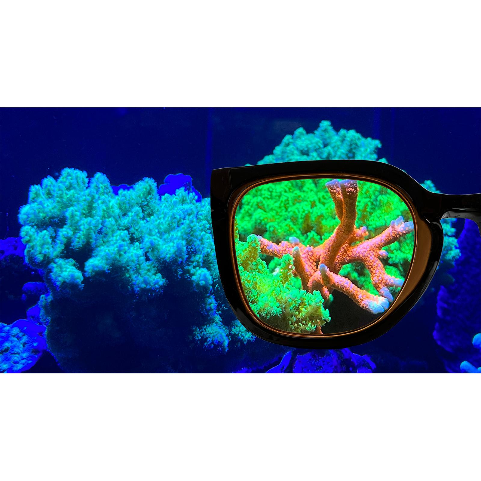 Die Coral Glasses absorbieren das blaue Farbspektrum der Aquarium Beleuchtung und lassen so die Korallen in ihren natürlichen, leuchtenden Farben erscheinen.