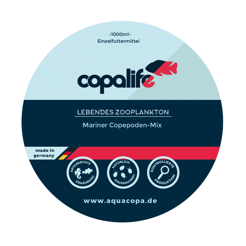 „Deine Aquarienbewohner erhalten mit Copalife-Zooplankton genau das, was sie für eine gesunde Entwicklung und ein langes Leben benötigen. Denn Copalife Zooplankton produzieren wir mit reinen Mikroalgen und unserer ausgewogenen Spezialfuttermischung mit vielen Vitaminen, Carotinoiden und Omega-3- Fettsäuren.