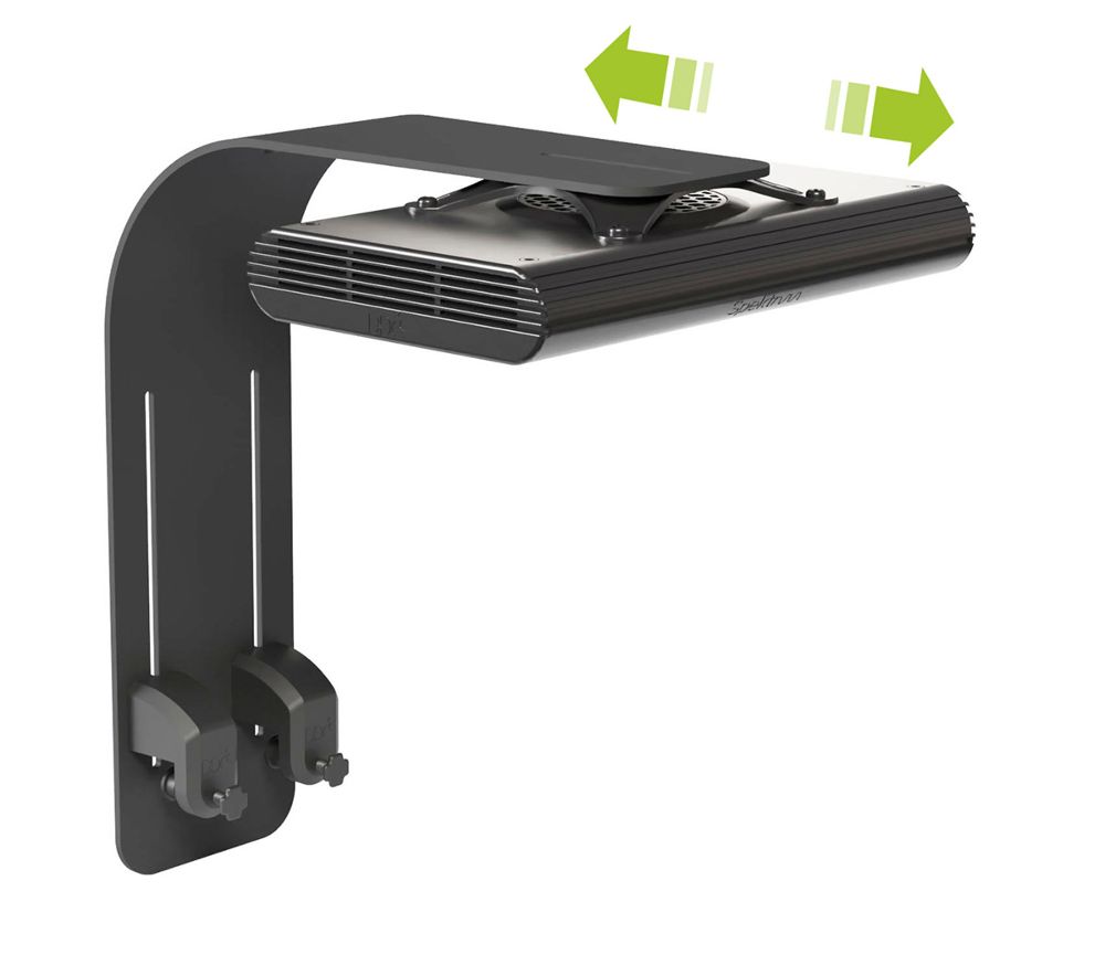 Bei der neuen Gen2 Version können Sie die Leuchte jetzt nach hinten und vorne verschieben, um die Position an verschiedene Beckenbreiten anzupassen. Sie kann auch gedreht werden, sodass die Leuchten entlang der Länge oder über die Breite des Aquariums positioniert werden können.