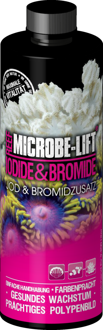 Iodide & Bromide beugt einem Jod-Mangel vor, verbessert das Polypenbild sowie die natürliche Farbgebung von Korallen und steigert die Vitalität aller Aquarienbewohner.