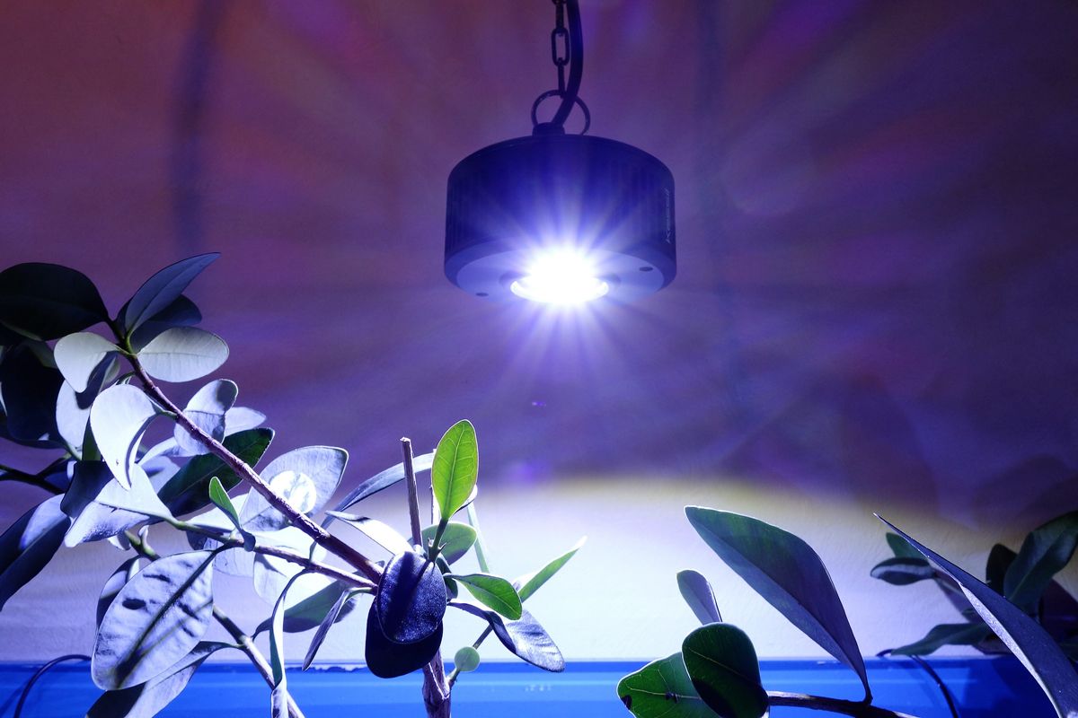 Kessil®s patentierte Dense Matrix LED-Technologie fasst mehrere LED-Chips auf einem einzigen Array (Cluster / Bündel) zusammen und erzeugt so eine leistungsstarke und durchdringende Lichtquelle mit großer Reichweite, gleichmäßiger Verteilung des Lichts und natürlichen, lebhaften Lichteffekten. Die Linse auf der Matrix sorgt dabei dafür, dass es direkt unter der Leuchte nicht zu hell ist und gleichzeitig an den Rändern noch nicht zu dunkel. Die Reichweite der Ausleuchtung kann weiter verbessert werden, indem mehrere Leuchten dicht positioniert werden.