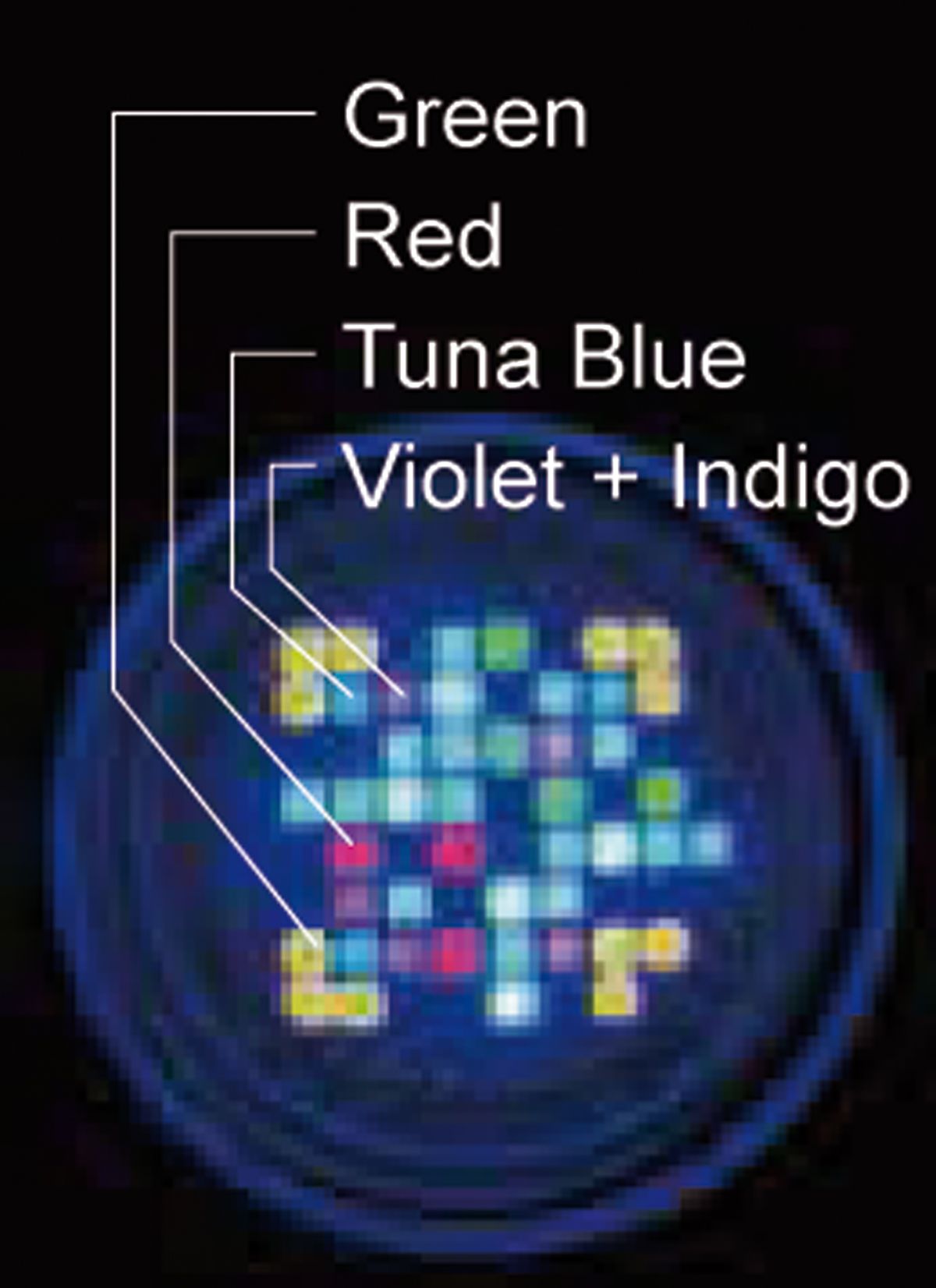 Spektrum: Tuna Blue + Rot + Grün + Purple (Violet+Indigo)
