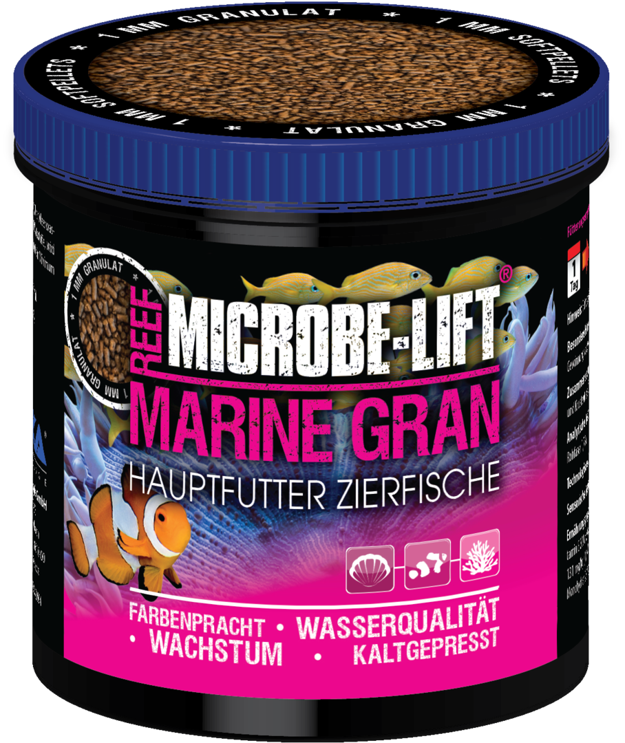 Marine Gran ist ein kaltgepresstes Soft-Futtergranulat zur optimalen Ernährung Ihrer Meerwasserfische. Durch die sehr hochwertigen und speziell aufeinander abgestimmten Inhaltsstoffe wird die natürliche Farbgebung und das Wachstum optimiert, sowie Ausscheidungen auf ein Minimum reduziert.