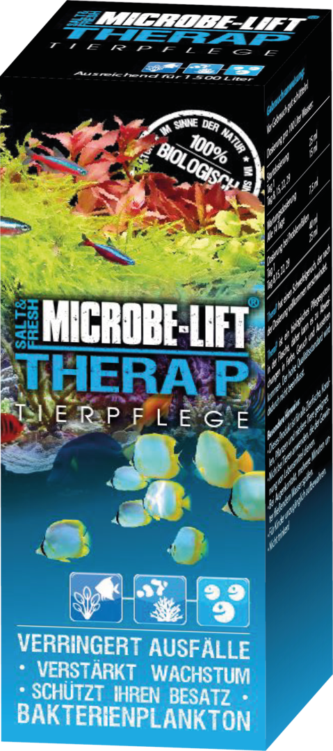 - MICROBE-LIFT® Thera P ist kein Medikament und sollte bei Aquariumsfischen nicht für die Behandlung von Fischkrankheiten, bakteriellen Infektionen oder Pilzbefall in einem fortgeschrittenen Stadium eingesetzt werden.