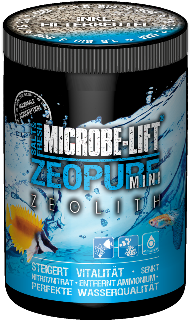 - Belassen Sie bei einem Filterwechsel immer einen Teil altes Zeopure Mini im Filter, um die nützliche Bakterienfauna nicht zu beeinträchtigen.