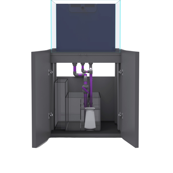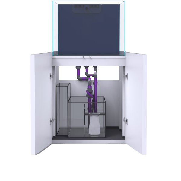 In der großzügig dimensionierten Hauptkammer können mehrere Geräte wie Abschäumer, Wirbelbettfilter oder Algenreaktor gleichzeitig untergebracht werden. Die Hauptkammer weist einen konstanten Wasserstand von ca. 21cm auf.