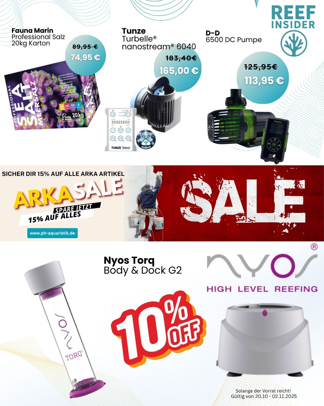 Egal ob du auf der Suche nach Strömungspumpen, Beleuchtung, Abschäumern oder Wasserpflege bist – in unserem SALE-Bereich bekommst du alles, was dein Riff glücklich macht – und das zu unschlagbaren Preisen.